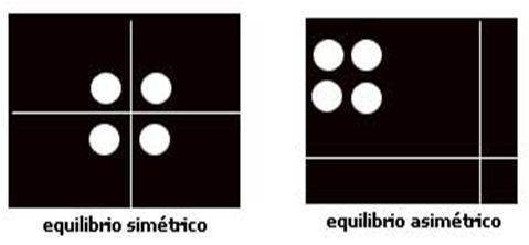 Un equilibrio es asimétrico cuando al dividir una composición en dos partes iguales, no existen las mismas dimensiones en tamaño, color, peso etc., pero existe un equilibrio entre dos elementos.